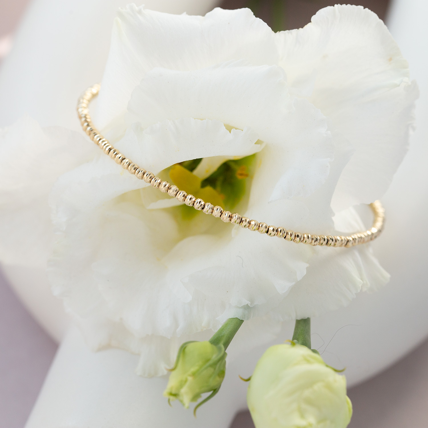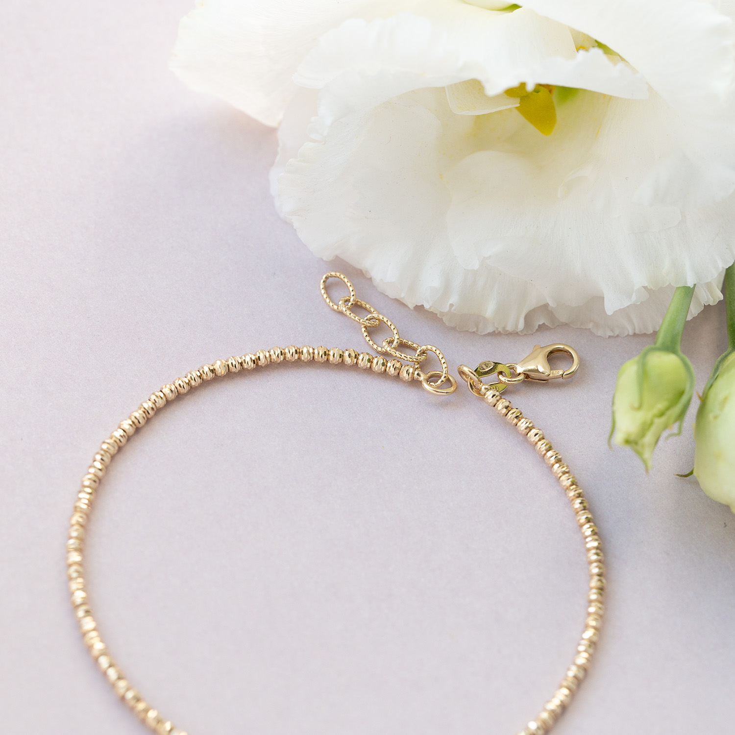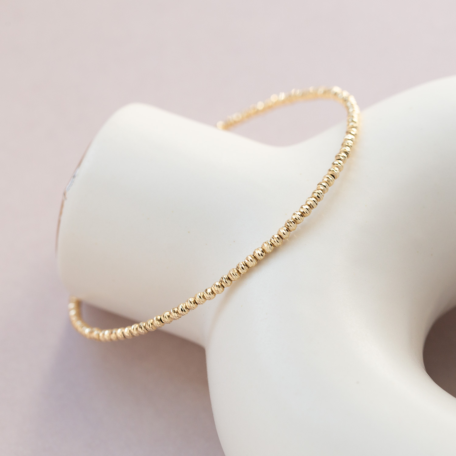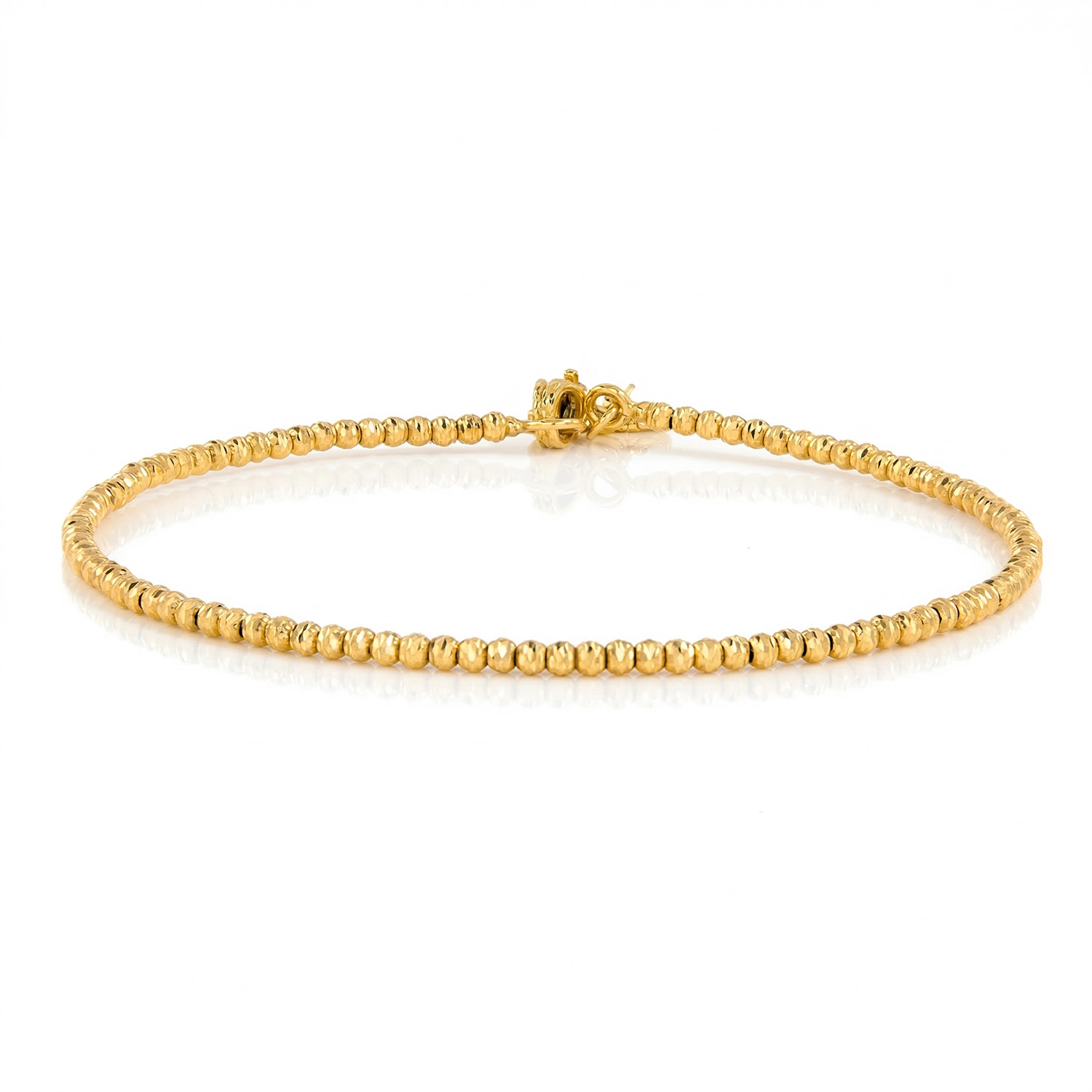 Bransoletka wykonana jest z drobnych nacinanych kuleczek z żółtego złota.