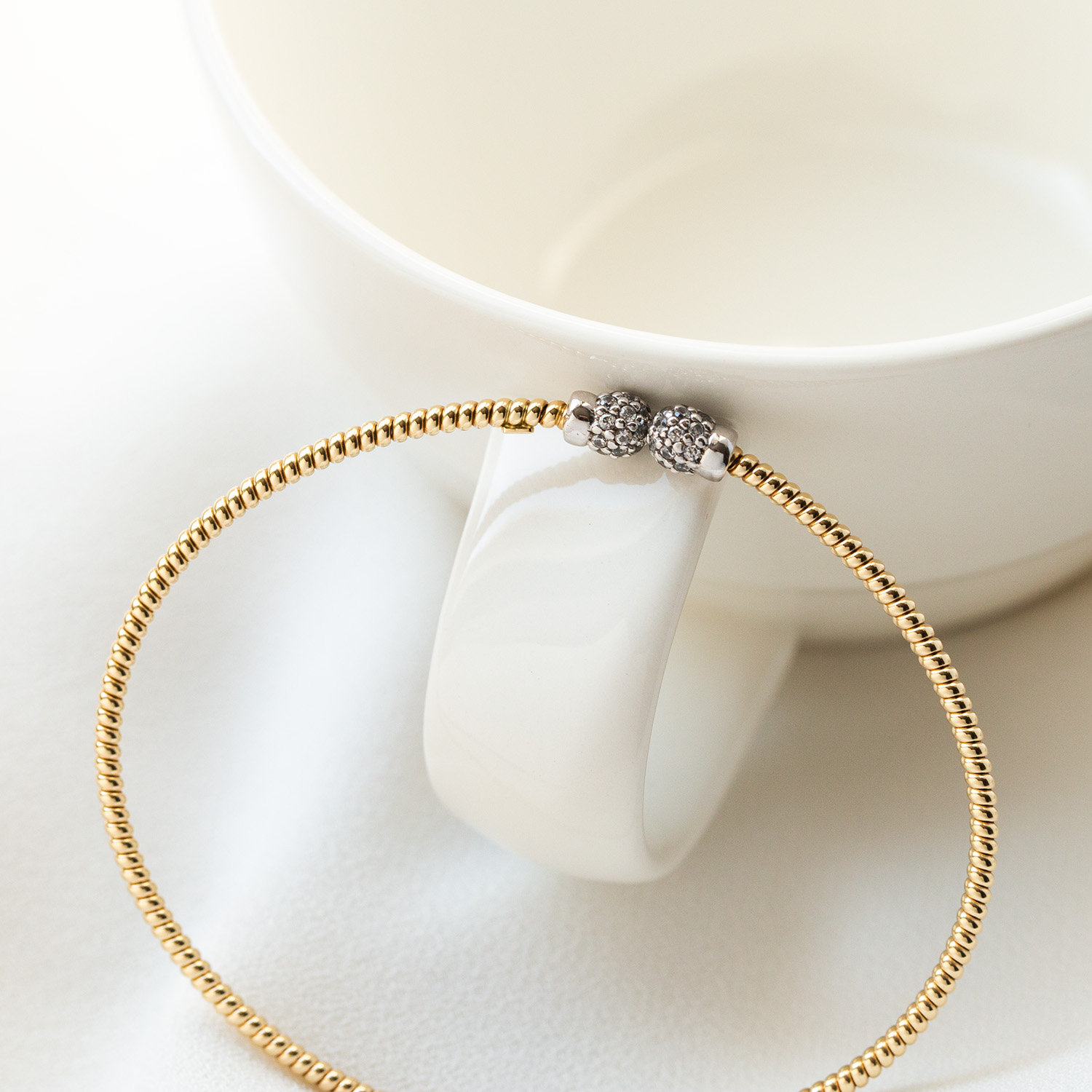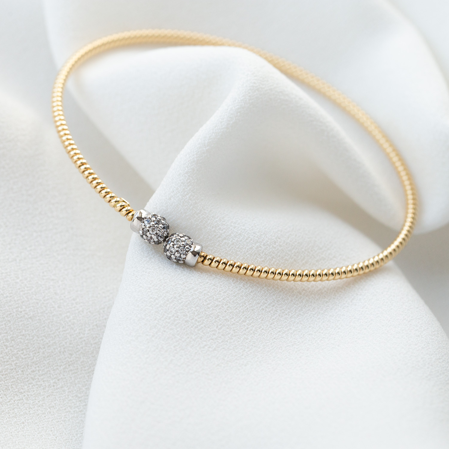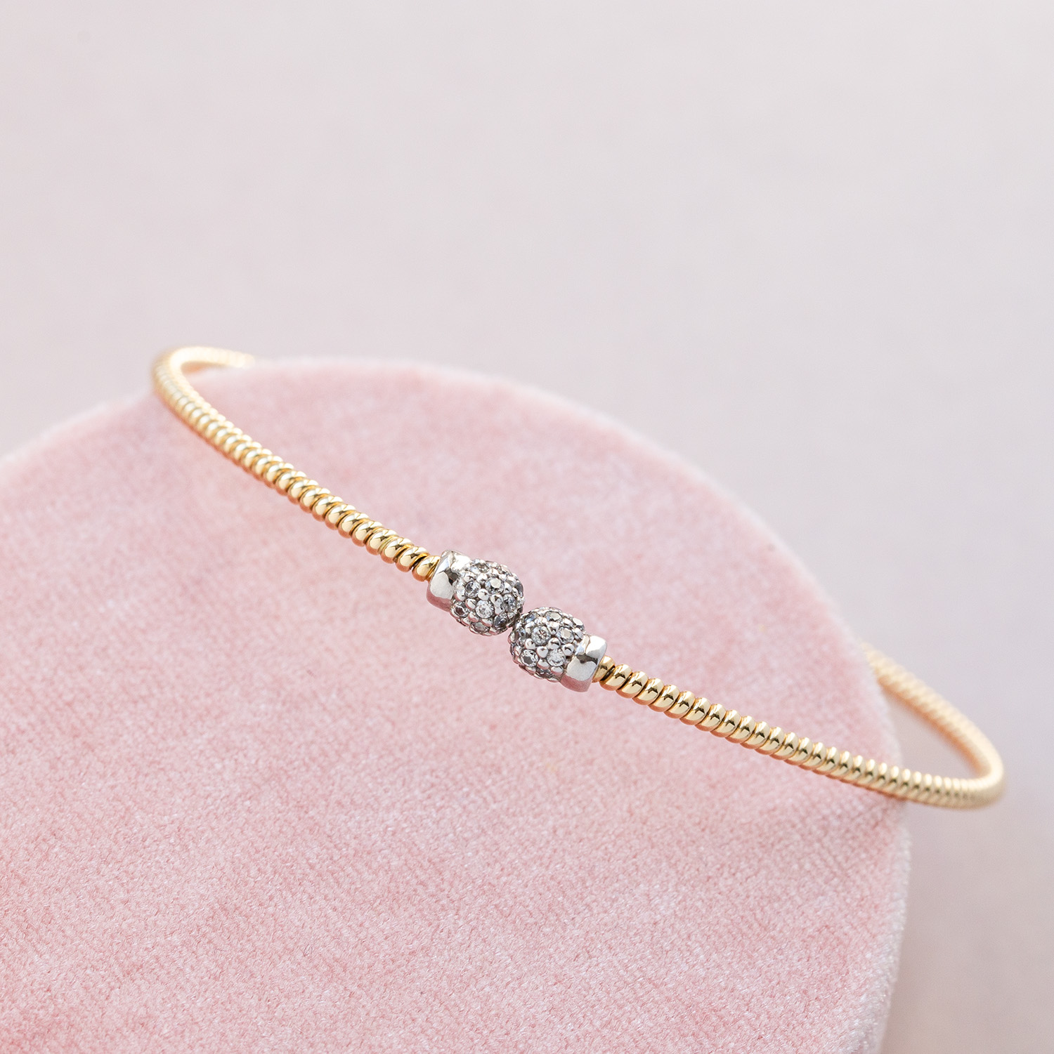 Elegancka sztywna bransoletka z żółtego i białego złota