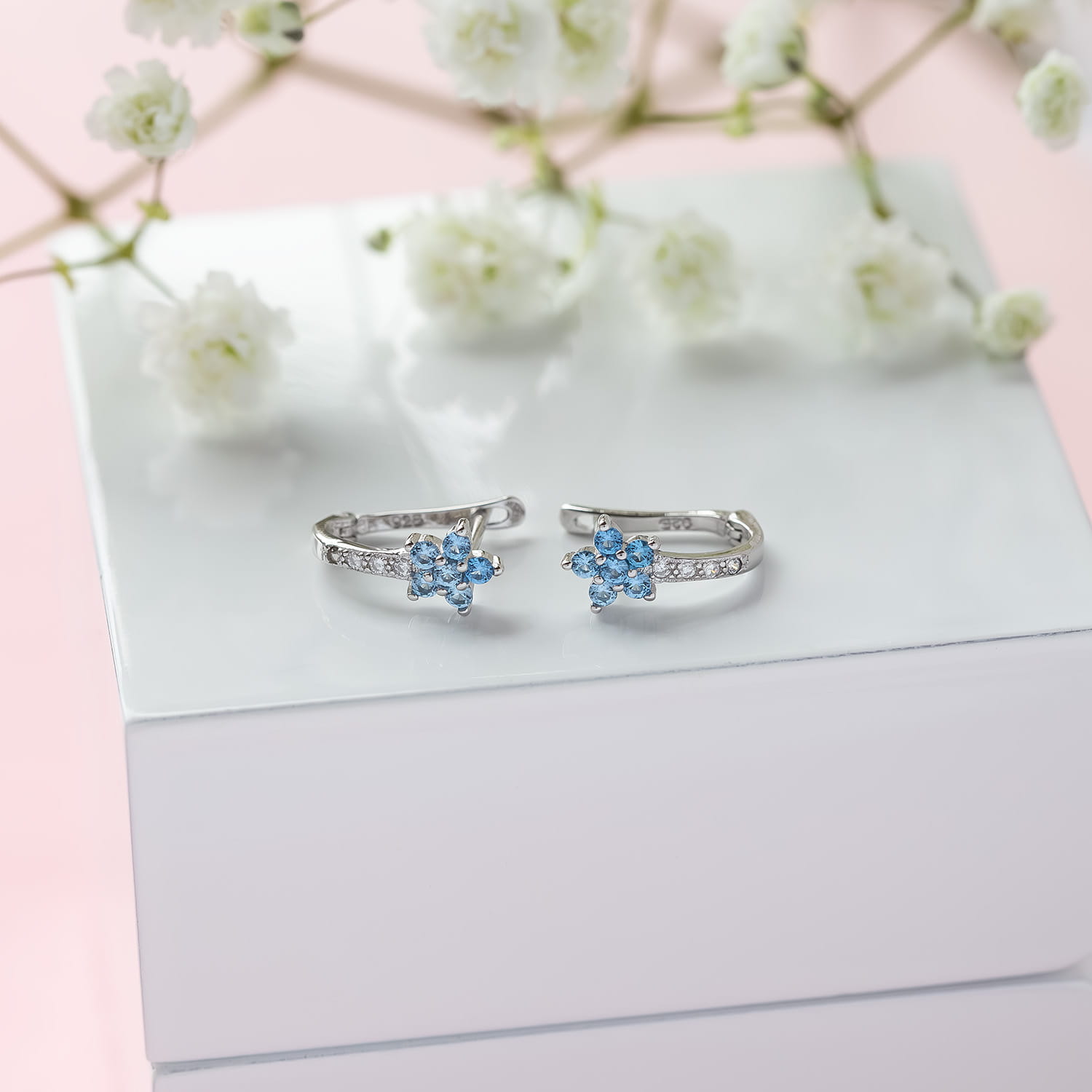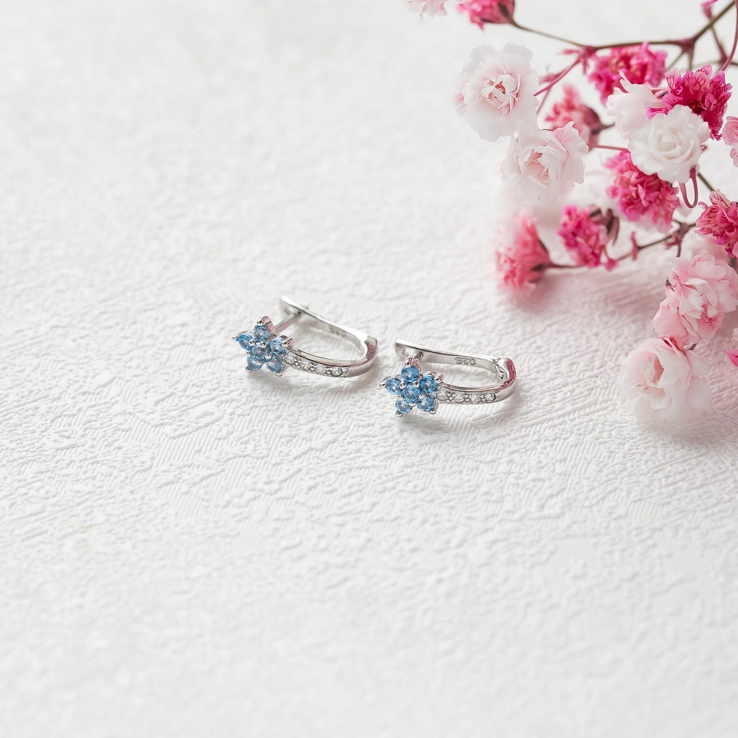 Kolczyki srebrne kwiatuszki z cyrkoniami
