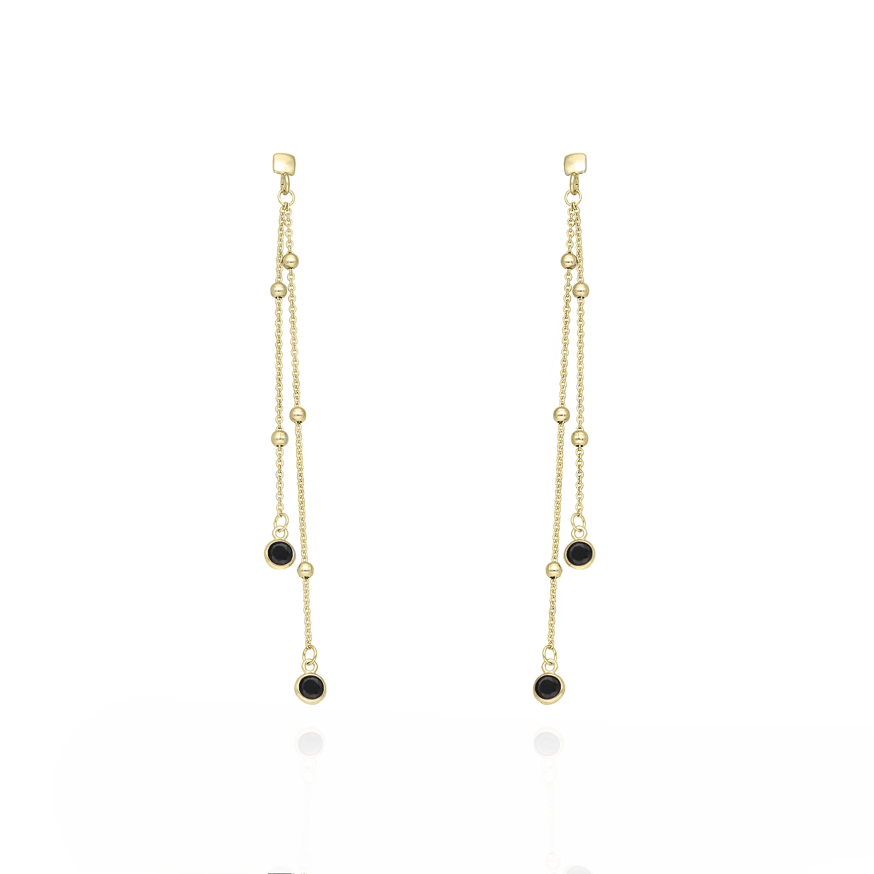 Kolczyki srebrne pozłacane 24-karatowym złotem z czarną cyrkonią.