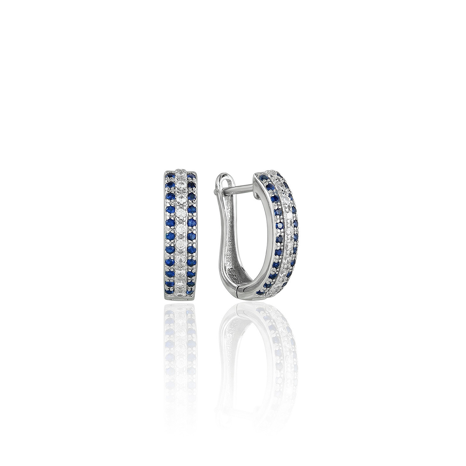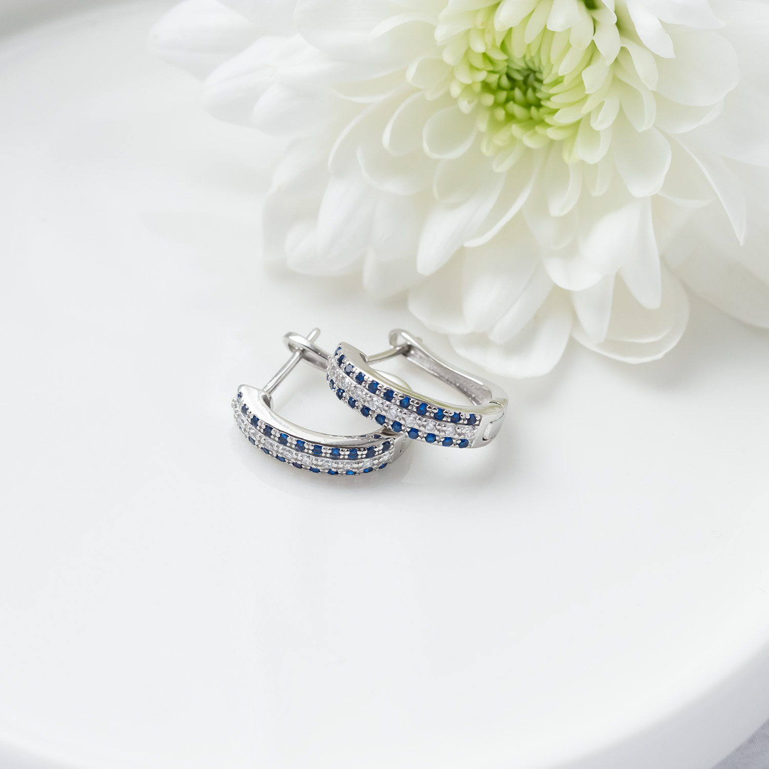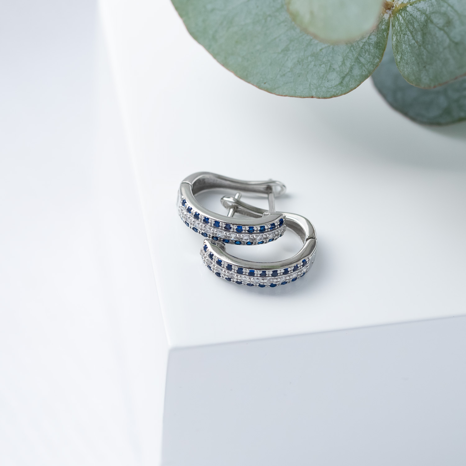 Kolczyki srebrne z niebieskimi oraz białymi cyrkoniami