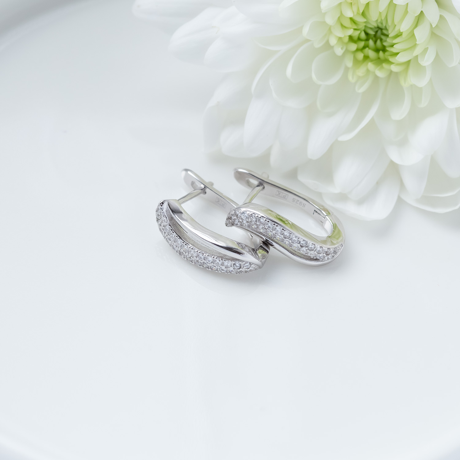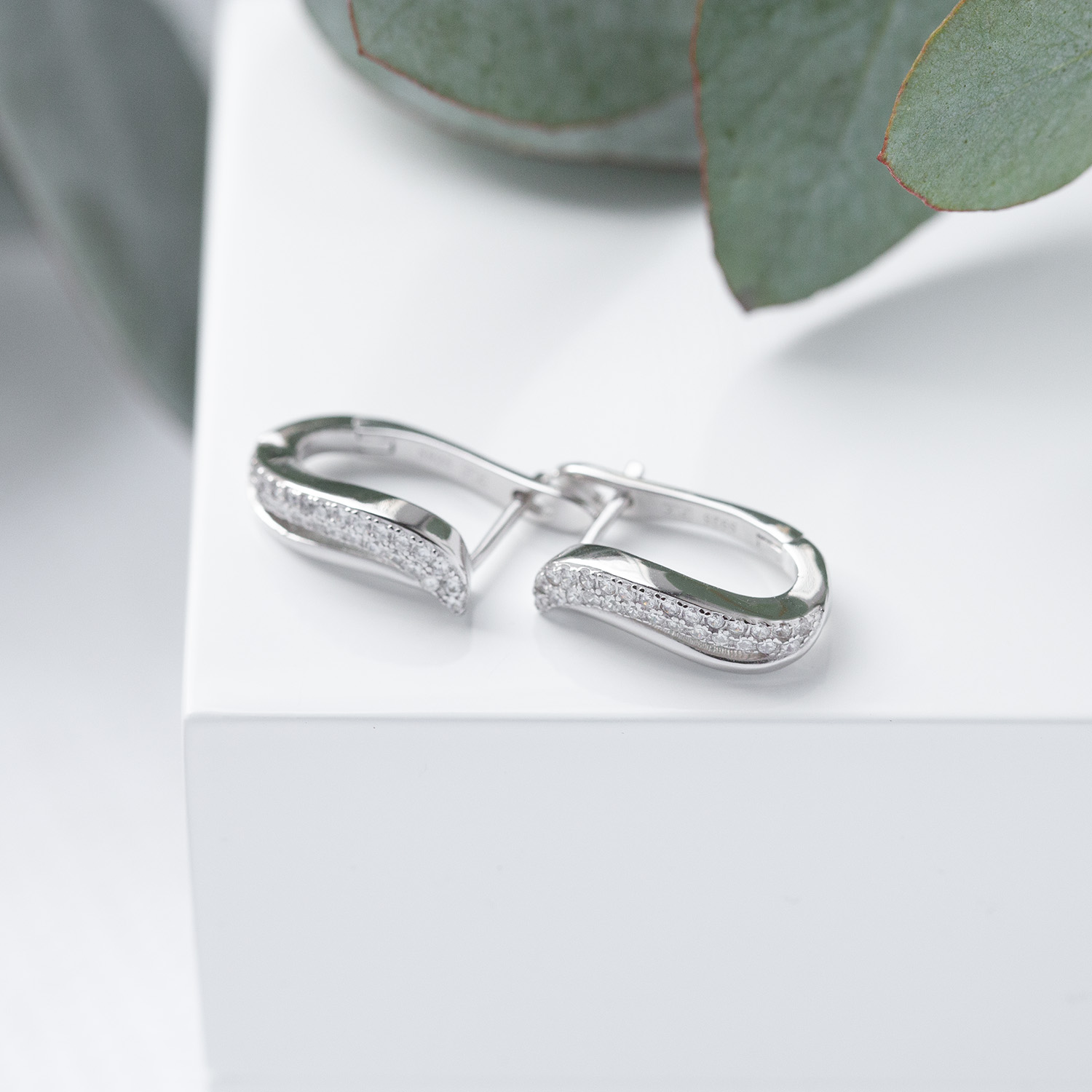 Wykonane ze srebra rodowanego. Srebro próby 925.