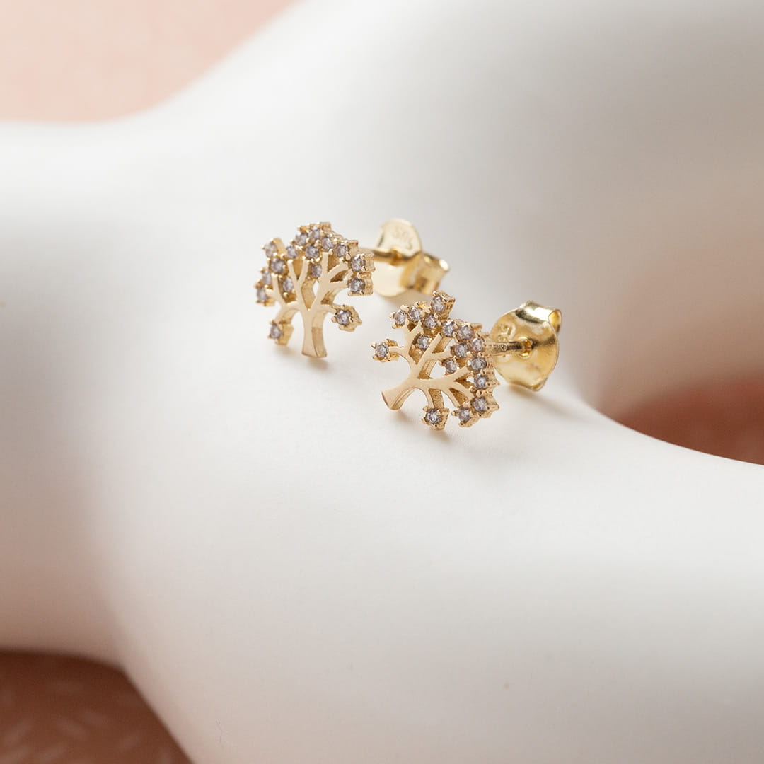 Kolczyki złote drzewko szczęścia z cyrkoniami