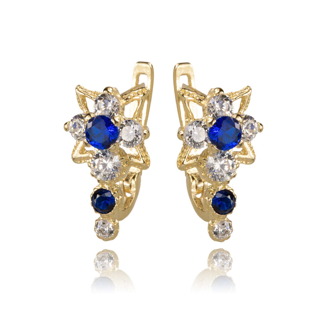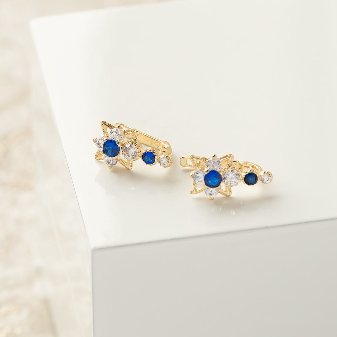 Kolczyki złote gwiazdki z białymi i granatowymi cyrkoniami