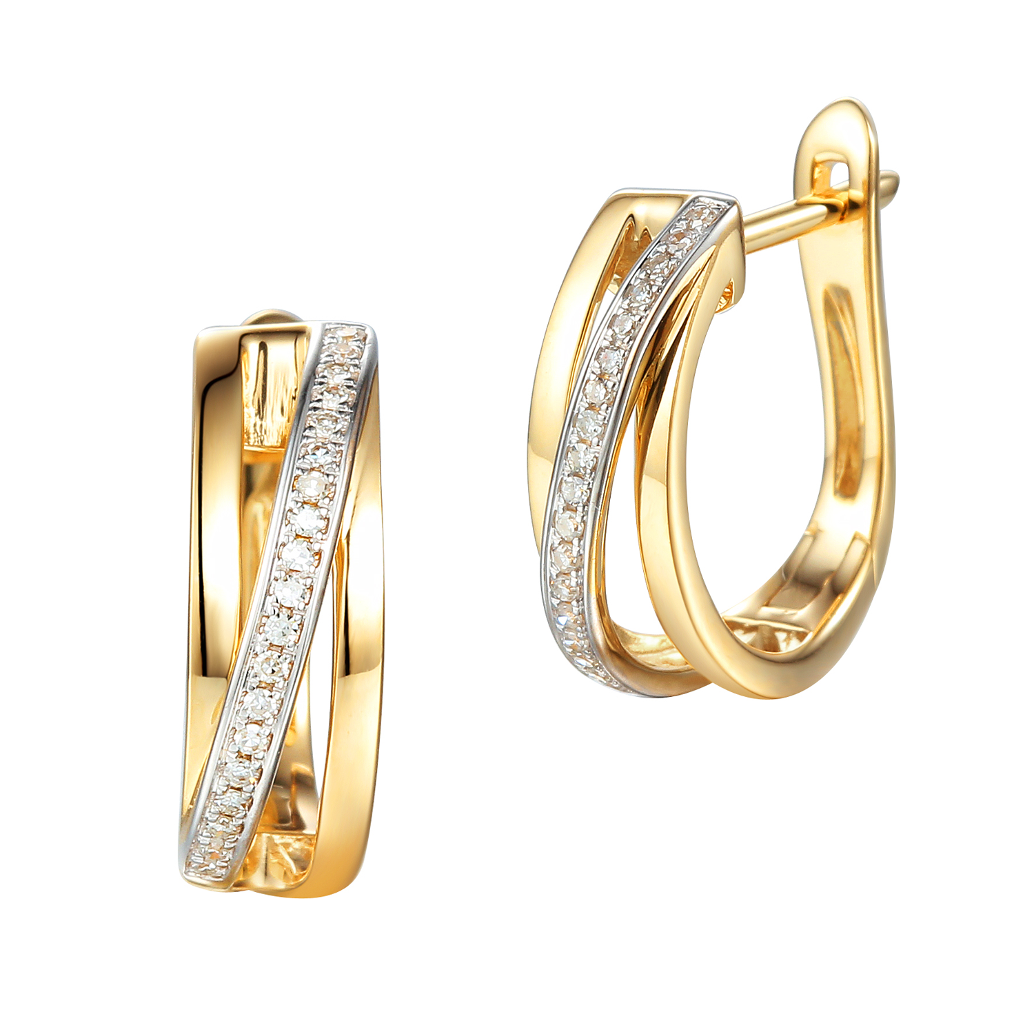 Złote kolczyki z diamentami zapinane na zapięcie angielskie.