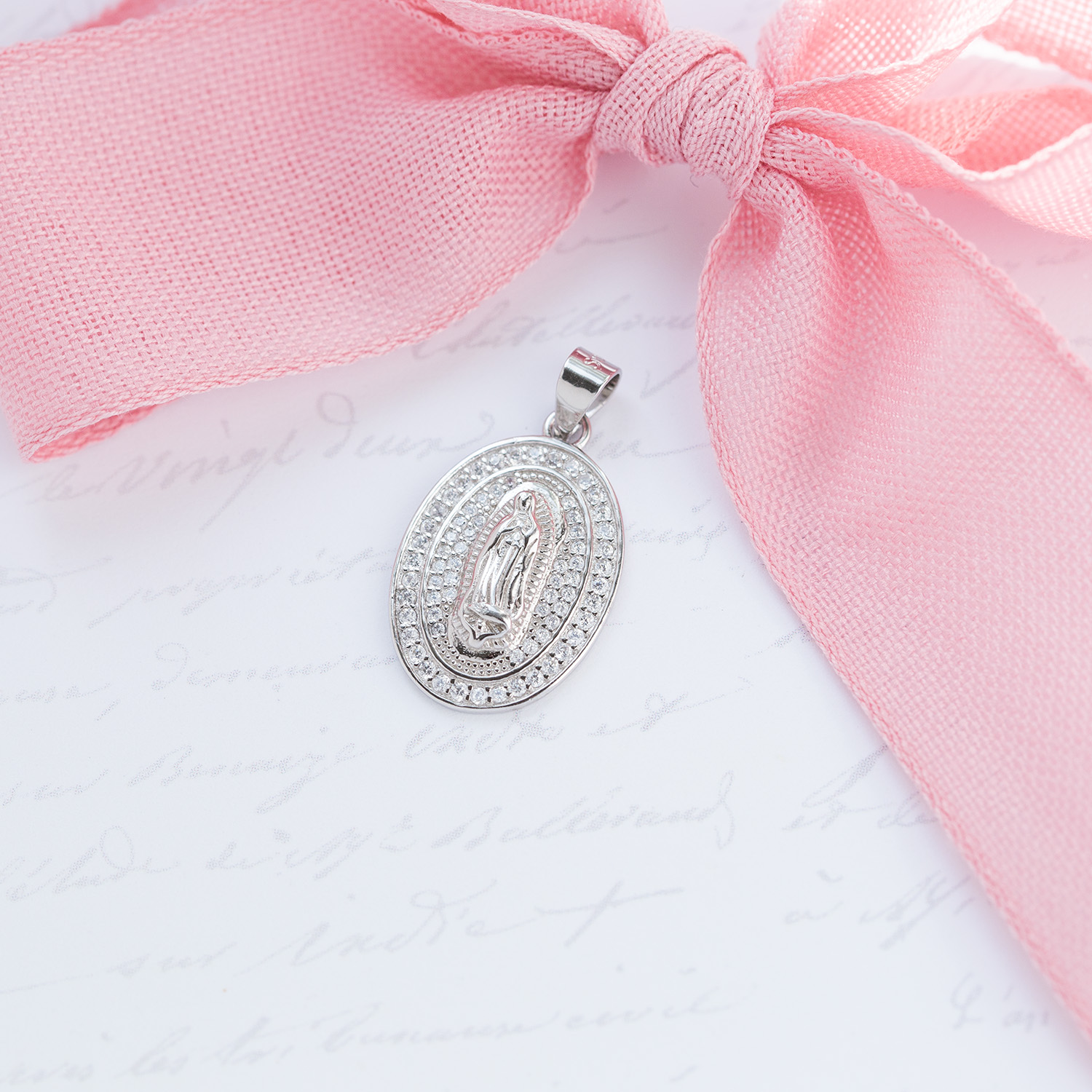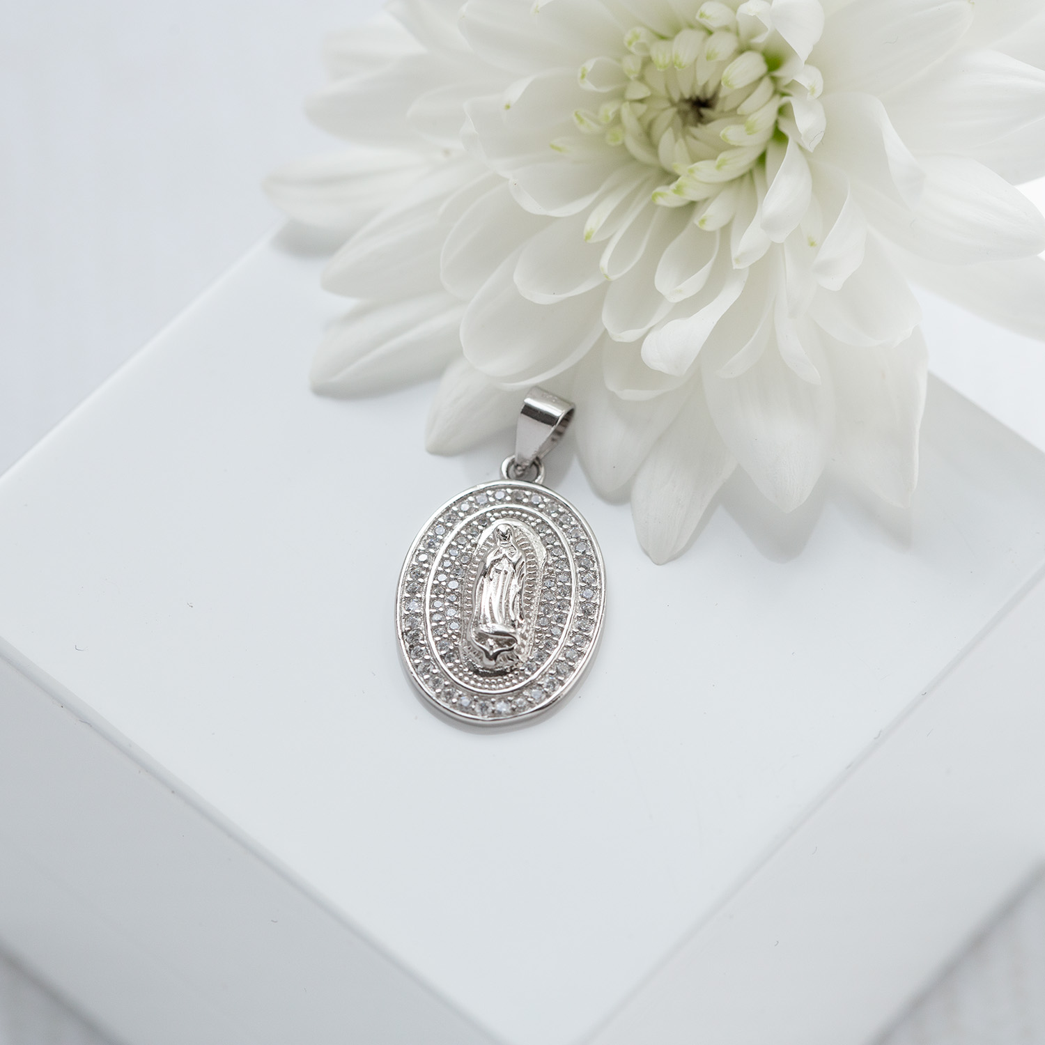 Wykonany ze srebra rodowanego z cyrkoniami w kolorze białym. Srebro próby 925.