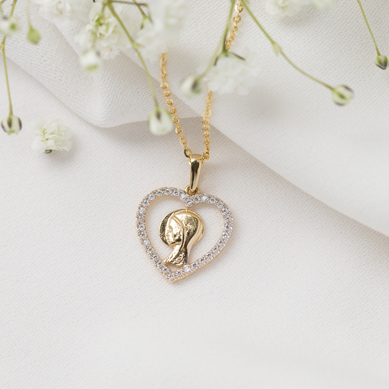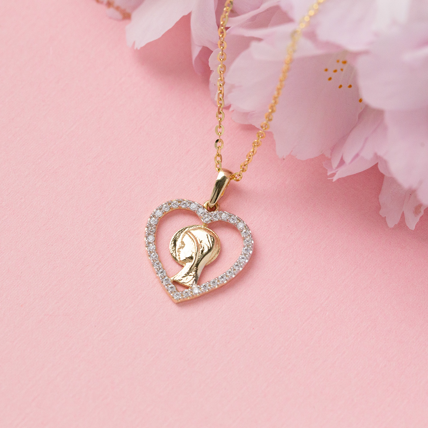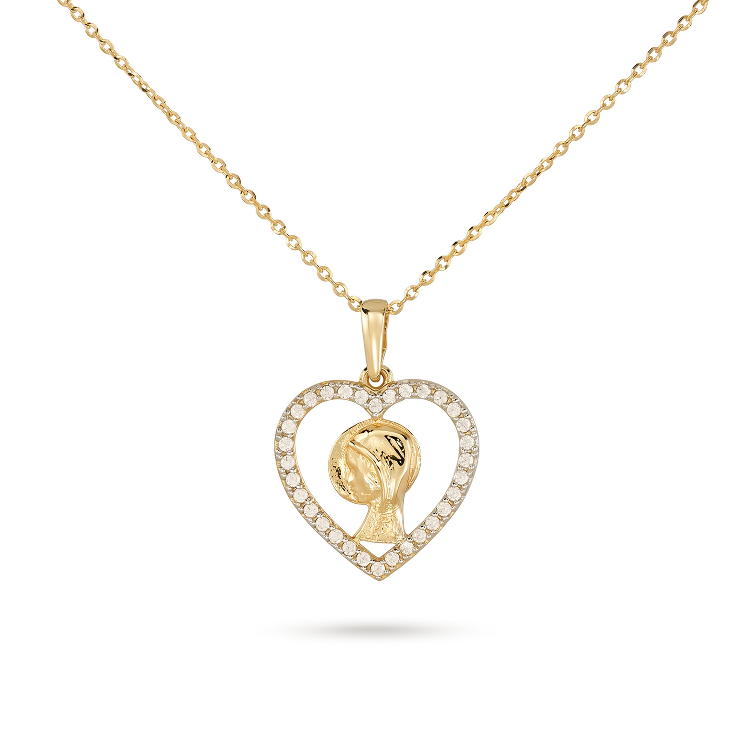 Złoty medalik Ikona Matki Boskiej w serduszku