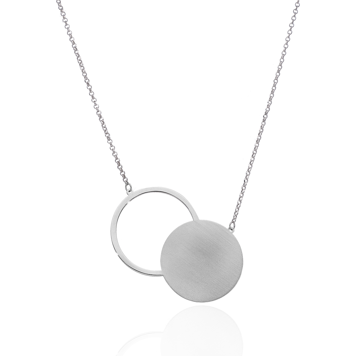 Naszyjnik srebrny rodowany koła.