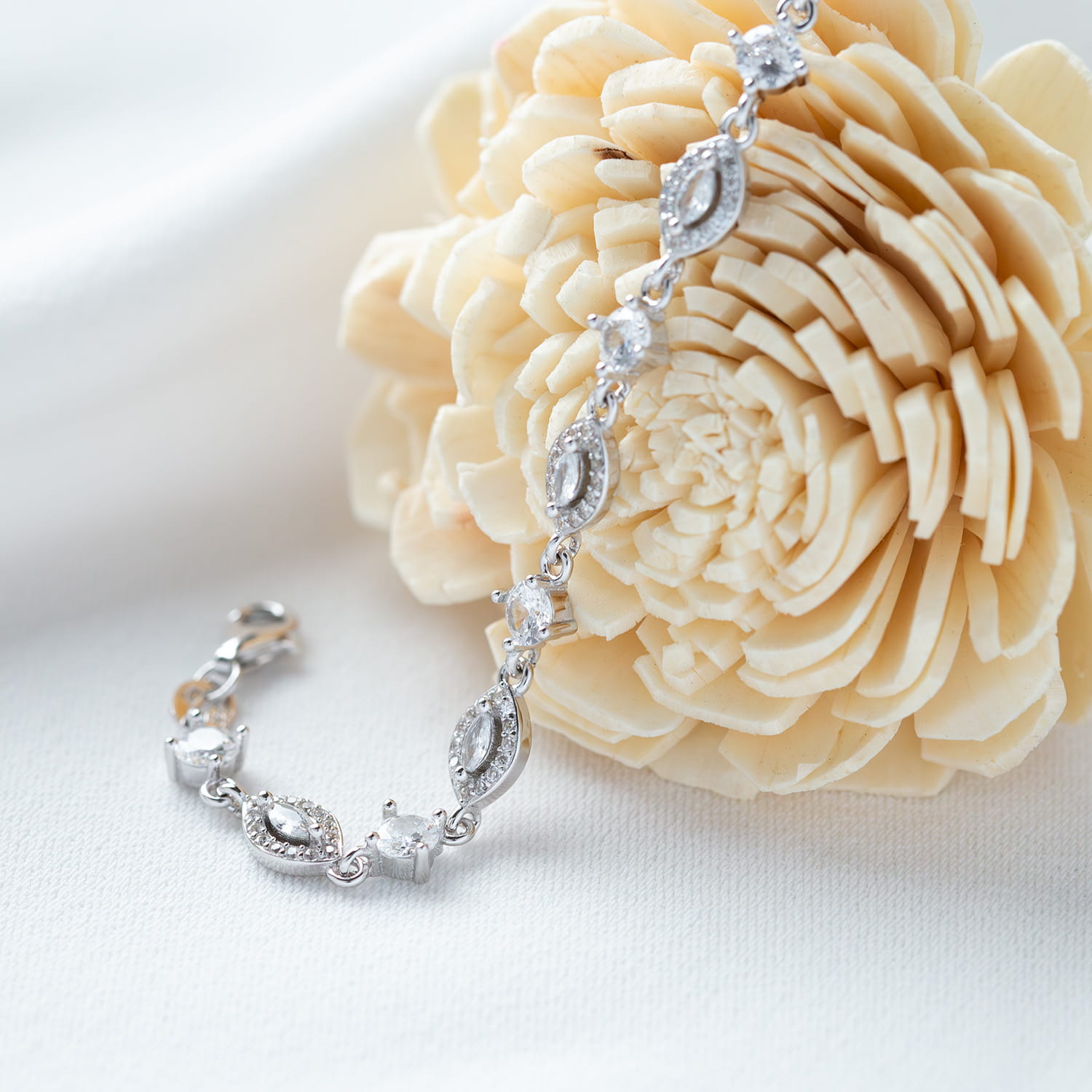 Wykonana ze srebra rodowanego z cyrkoniami. Srebro próby 925.