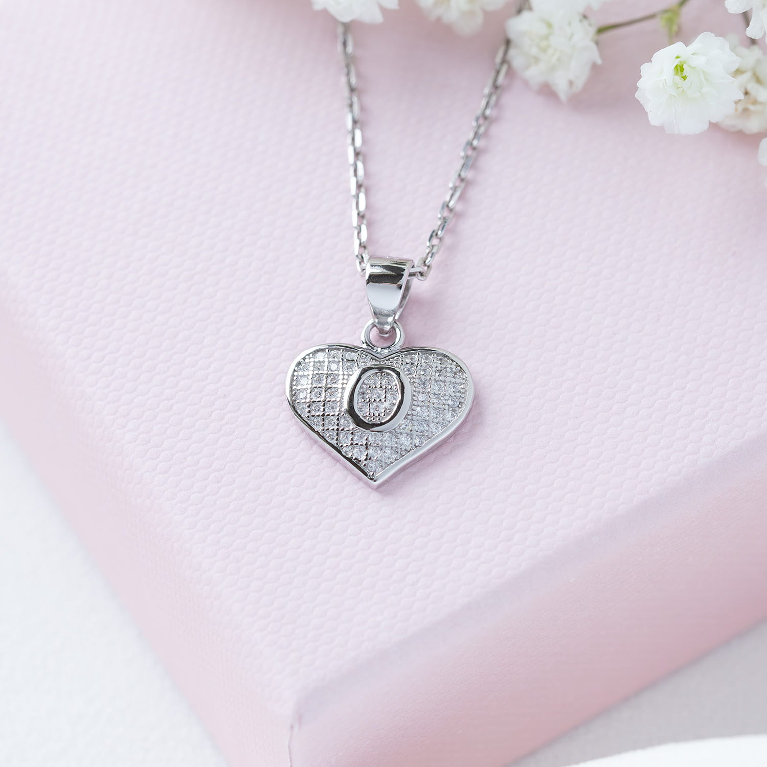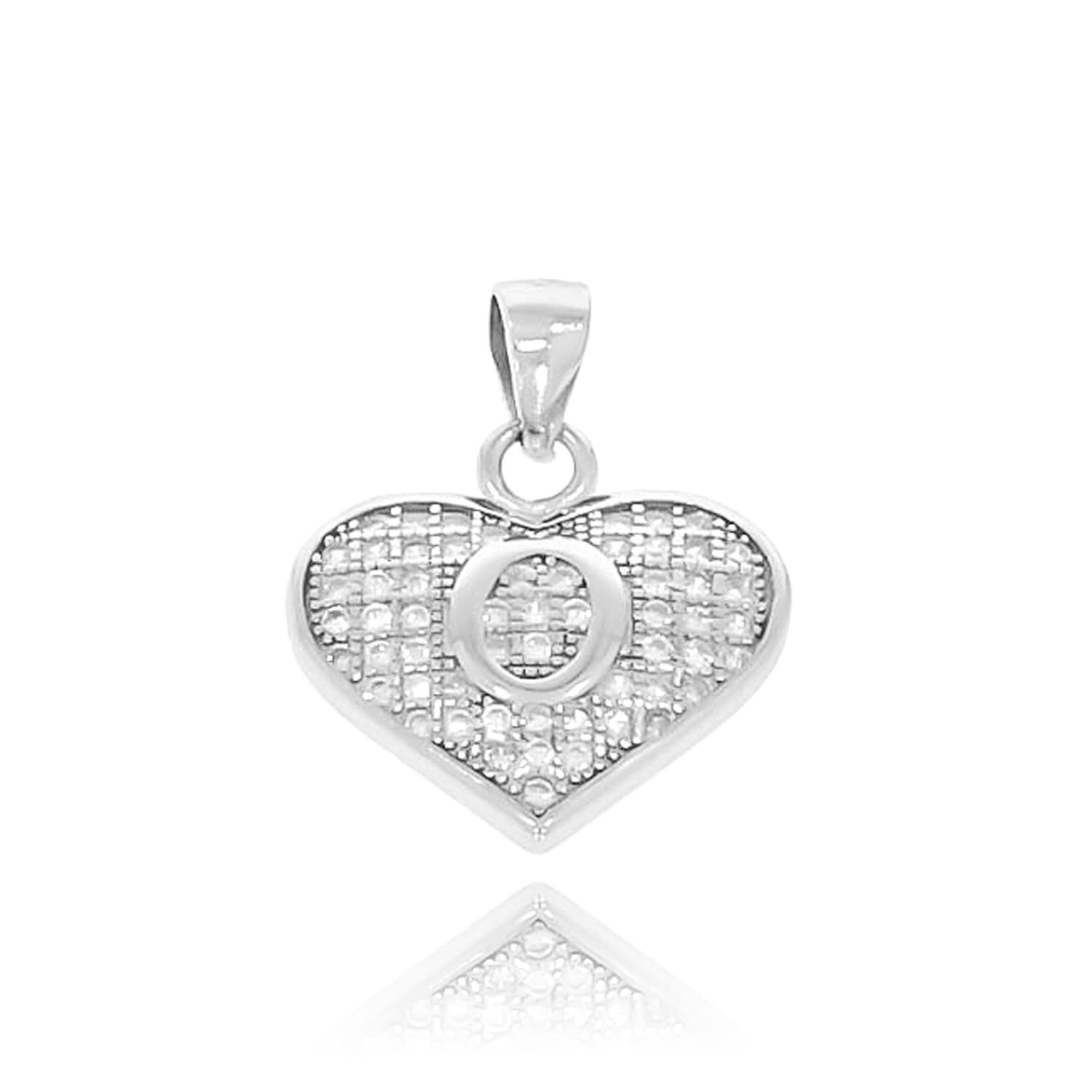 Srebrna zawieszka literka "O" z cyrkoniami w serduszku