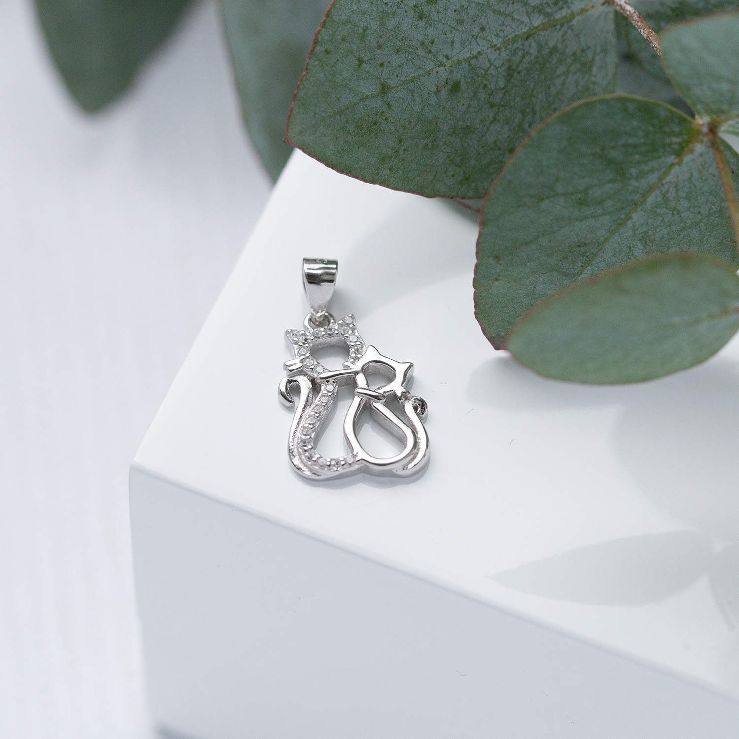 Zawieszka srebrna "kotki" z cyrkoniami.