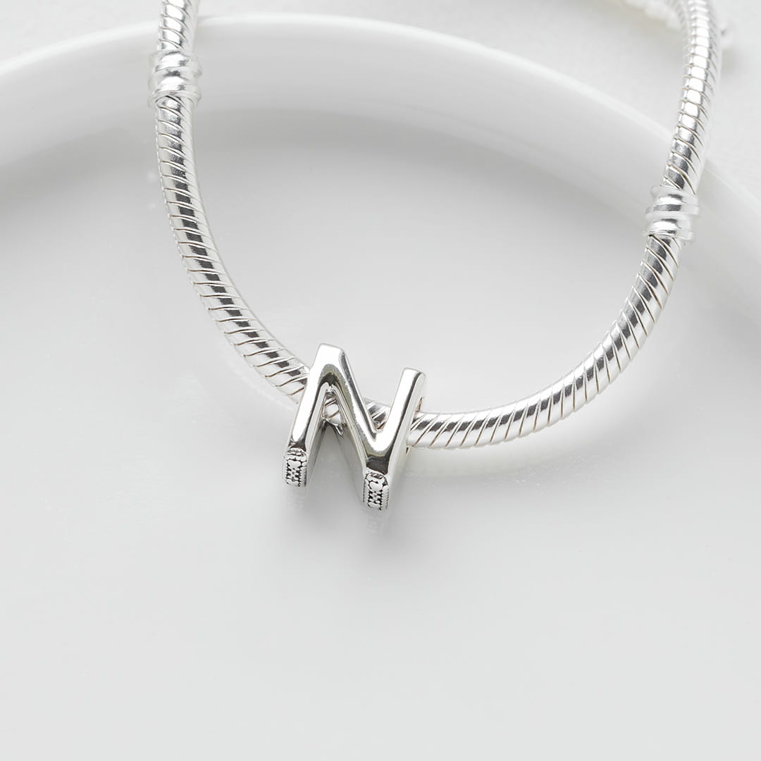 Zawieszka srebrna do bransoletek modułowych literka N dwustronna