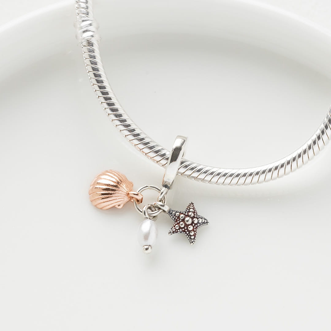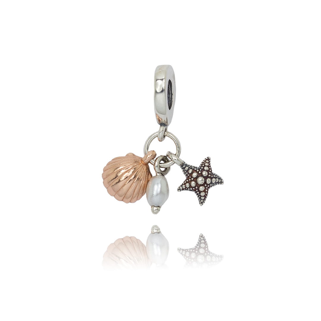 Zawieszka srebrna do bransoletek modułowych muszelka z perełką