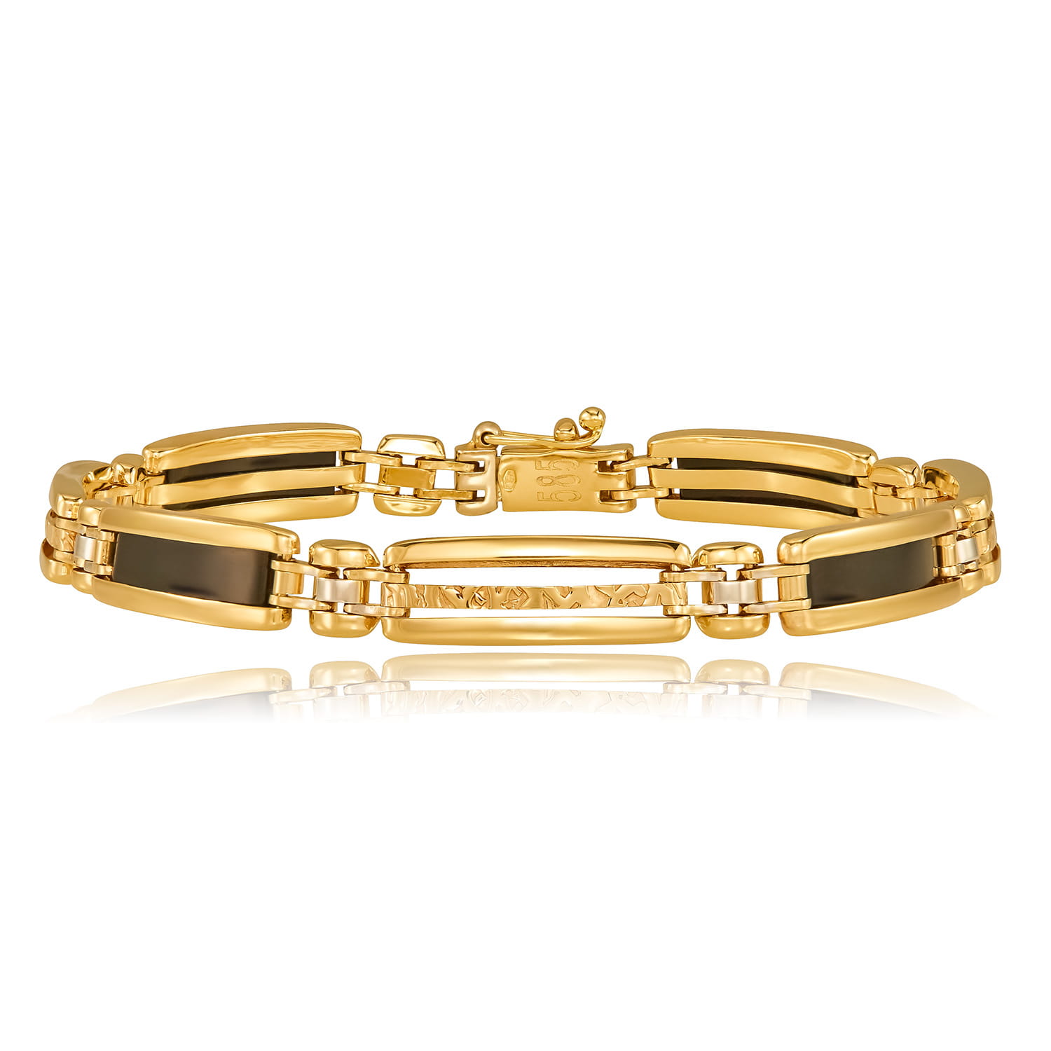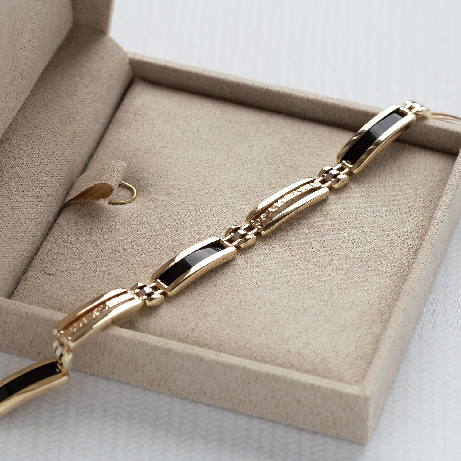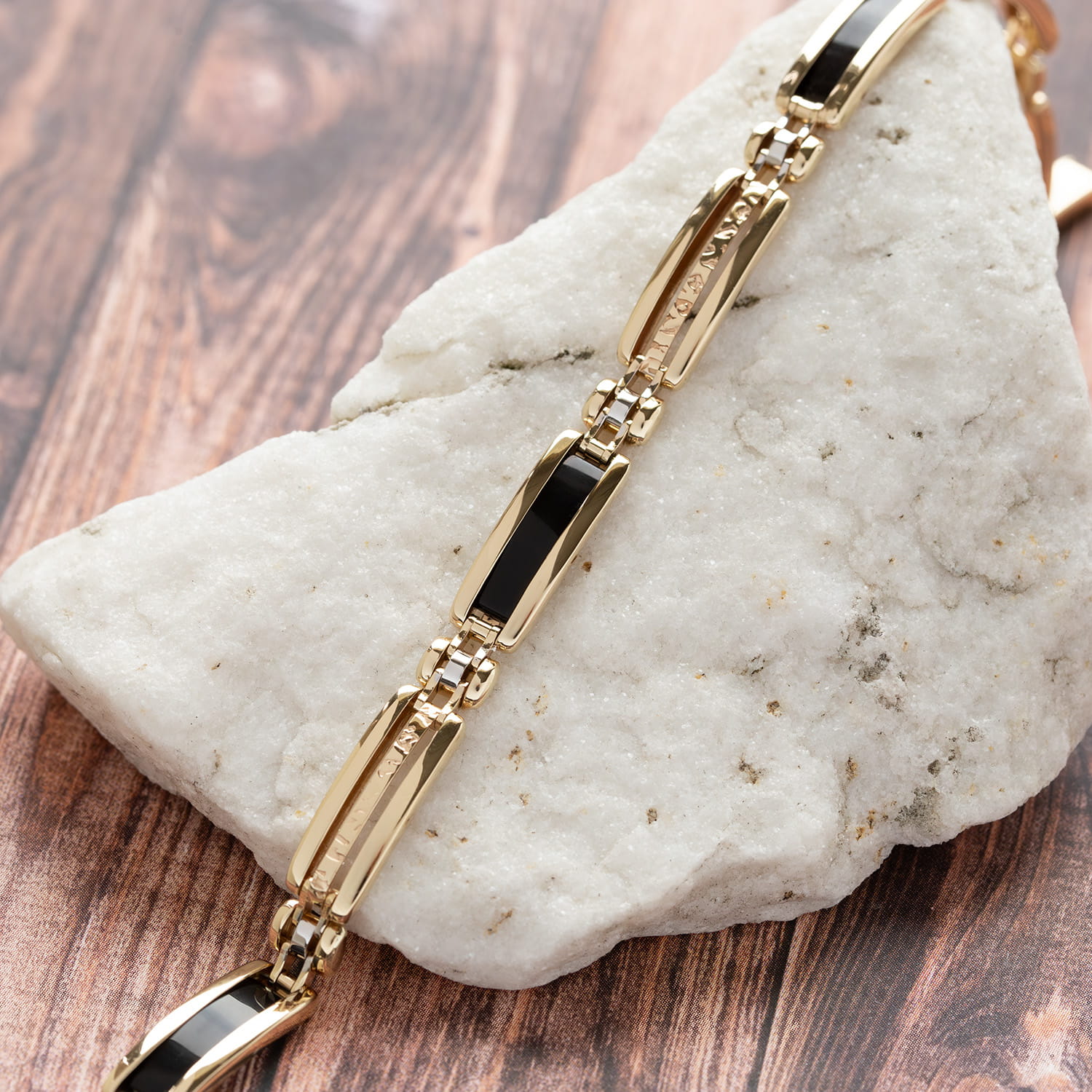 Piękna męska bransoletka złota z onyksem. Wykonana z żółtobiałego złota.