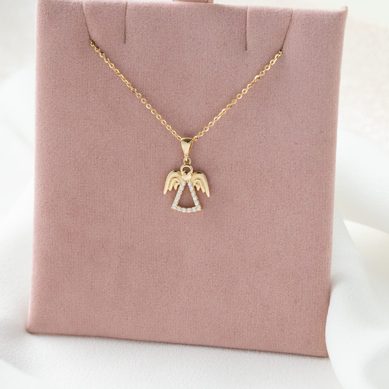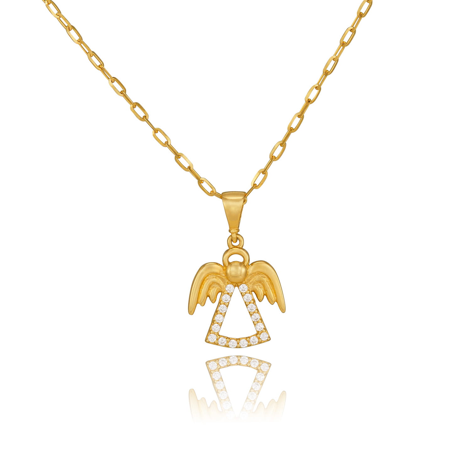 Złota zawieszka aniołek z białymi cyrkoniami
