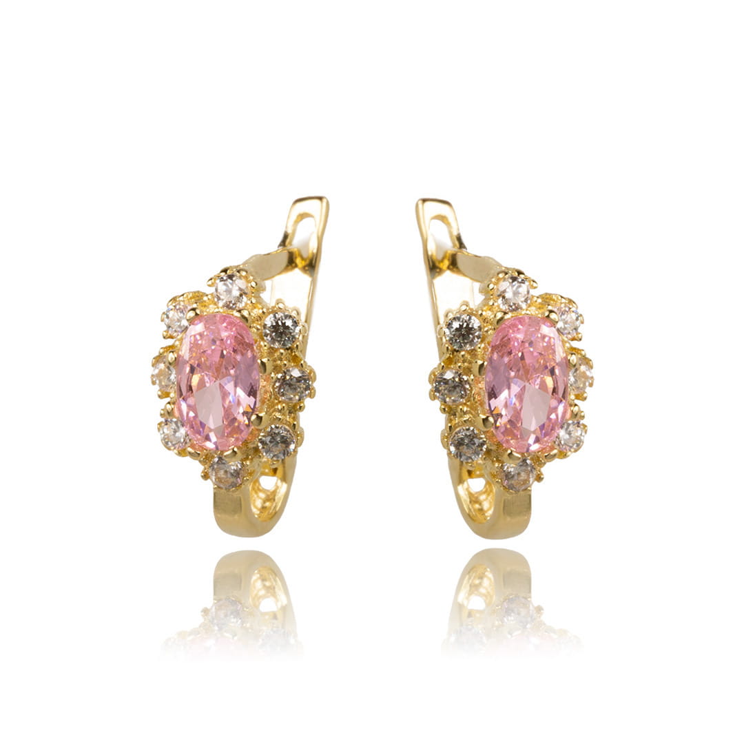 Kolczyki złote kwiatuszki z białymi i różowymi cyrkoniami