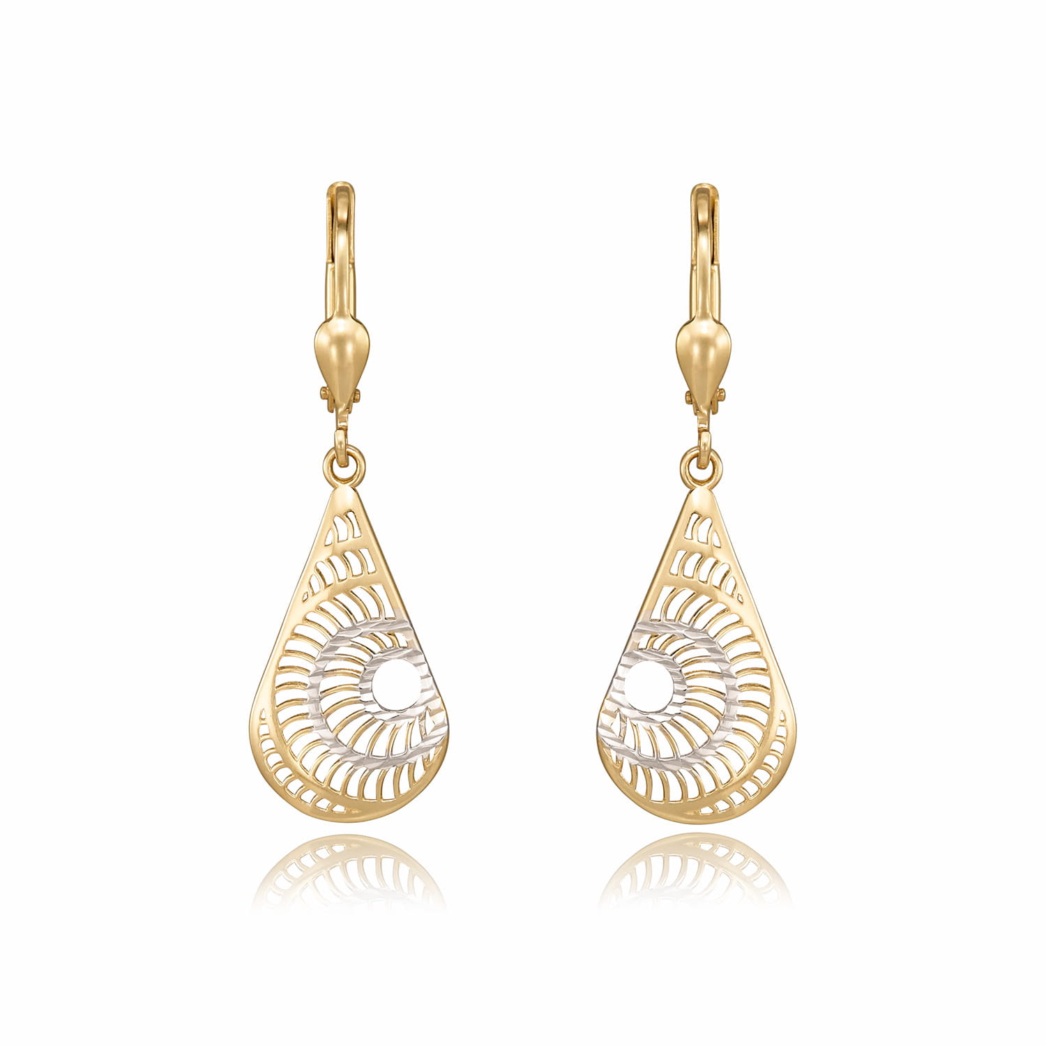 Złote kolczyki wiszące z białym złotem.