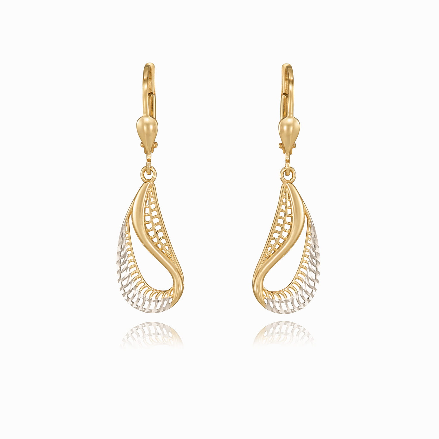 Złote kolczyki wiszące z białym złotem.
